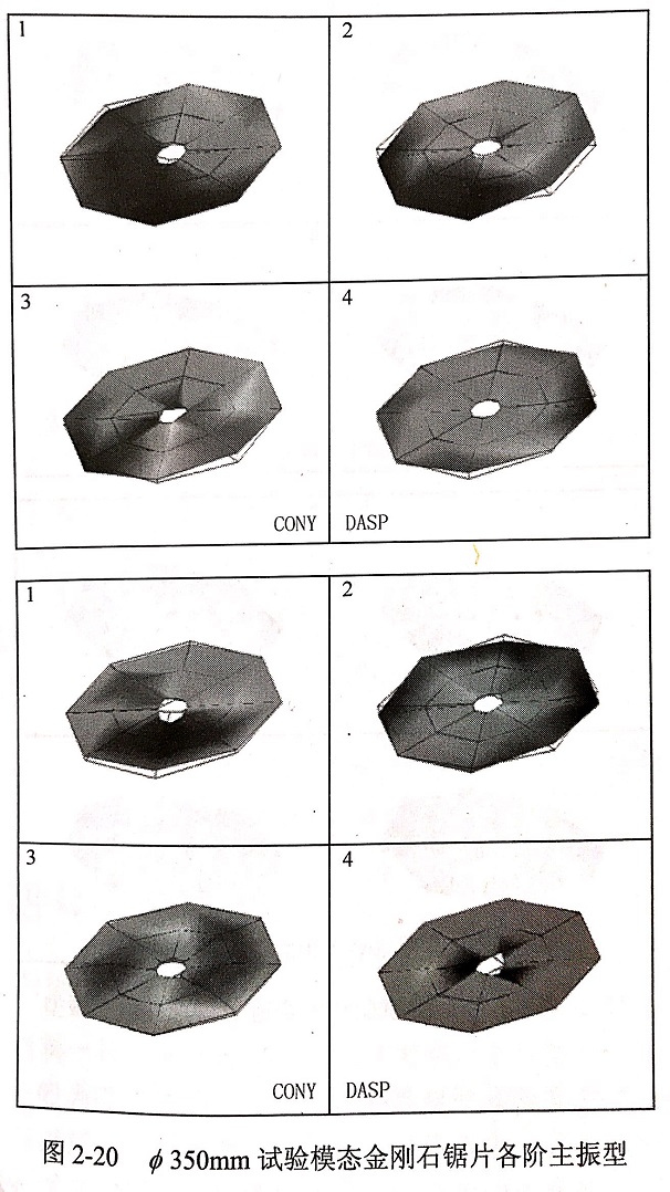本試驗(yàn)采用每組六個(gè)金剛石鋸片,對三組直徑為三百五/四百/五百齒數(shù)分別為24/26的金剛石鋸片進(jìn)行模態(tài)試驗(yàn)。