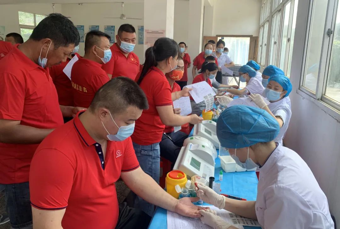 市中心血站的醫(yī)護(hù)人員認(rèn)真的為報(bào)名體檢的同事登記信息、做身體檢查。
